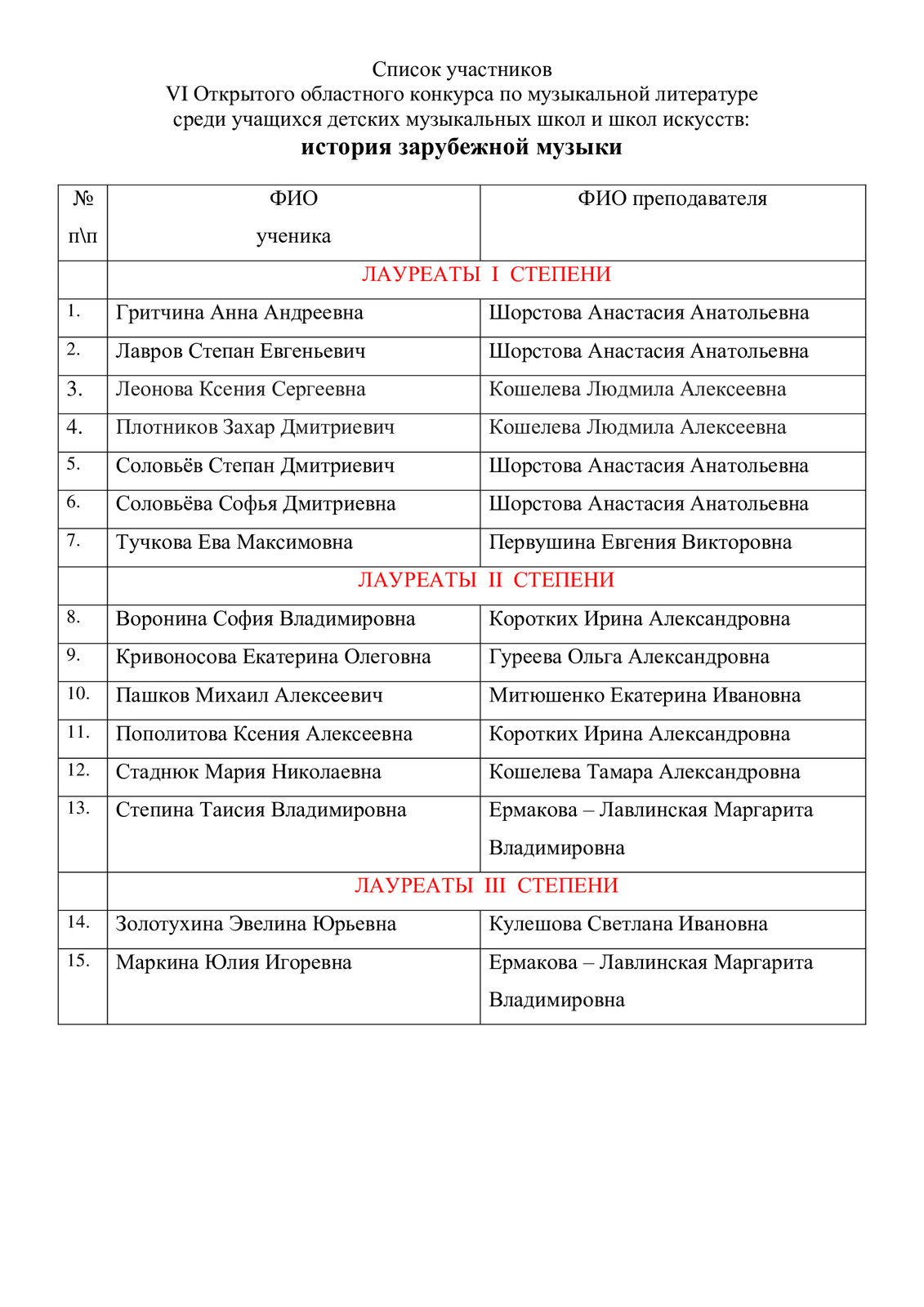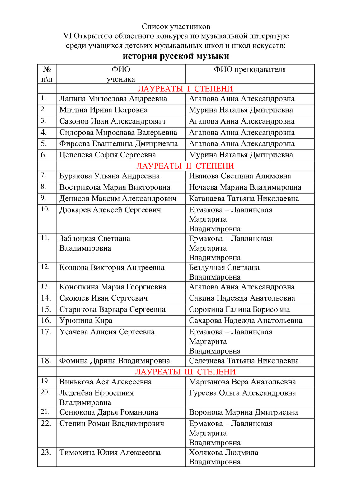 - Специальность - "Фортепиано", "Народные инструменты" (аккордеон, баян, домра, балалайка, гитара), "Духовые и ударные инструменты" (флейта), "Струнные инструменты" (скрипка, виолончель), "Хоровое пение", "Музыкальный фольклор", "Живопись";